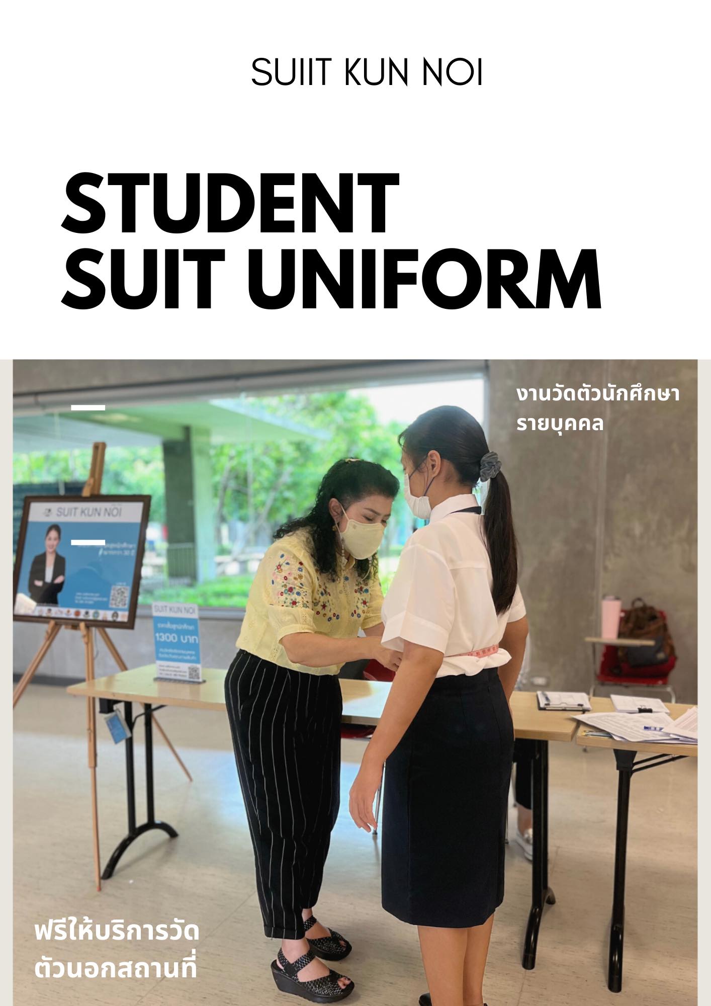ทางร้านสุทคุณน้อยได้ทำงานอย่างใกล้ชิดกับทางโรงเรียนผู้ช่วยเพื่อให้แน่ใจว่าชุดสูทที่เราผลิตเป็นไปตามข้อกำหนดและมาตรฐานของคณะ ทั้งสี รูปแบบ และการปักโลโก้สถาบัน