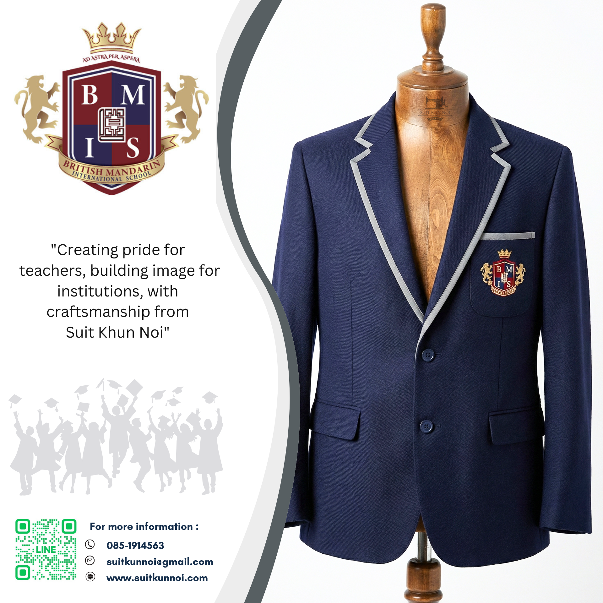 ร้านสูทคุณน้อยเข้าใจดีว่าโรงเรียนนานาชาติต้องการมากกว่าแค่ "ร้านตัดสูท" แต่ต้องการ "พันธมิตรเชิงกลยุทธ์" ที่สามารถส่งมอบโซลูชันที่ครบวงจรและตอบโจทย์ทุกความต้องการ