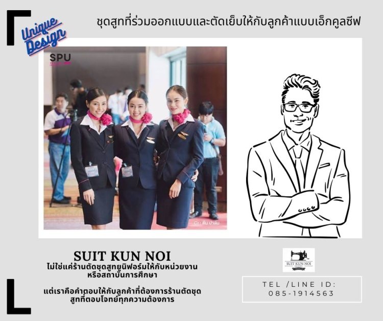ร้านสูทคุณน้อยให้บริการตัดเสื้อสูท กางเกง กระโปรง เสื้อเชิ้ต เสื้อกั็ก และอื่นๆ เพื่อนำมาใส่เป็นชุดตามที่ทางสถาบันได้กำหนดไว้ สามารถสอบถามเพิ่มเติมถึงประเภทสินค้าที่ต้องการและรูปแบบที่อยากได้ หรือโทร 085-1914563