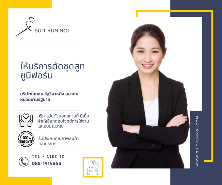 ยกระดับภาพลักษณ์สถาบันด้วยชุดสูทยูนิฟอร์มคุณภาพจากร้านสุทคุณน้อย เราคือพาร์ทเนอร์ช่วยสร้างแบรนด์ให้แข็งแกร่ง ปรึกษาเราเลย!