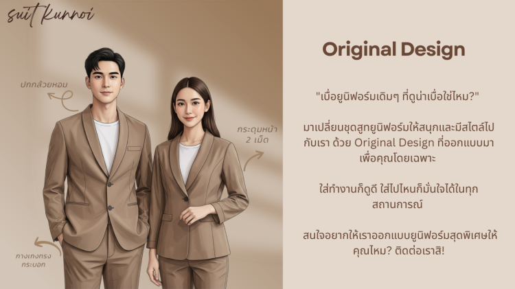 Exclusive Design จากสูทคุณน้อย ออกแบบยูนิฟอร์มเฉพาะองค์กร ไม่ซ้ำใคร สร้างอัตลักษณ์แบรนด์ สอบถามฟรี คลิกเลย!